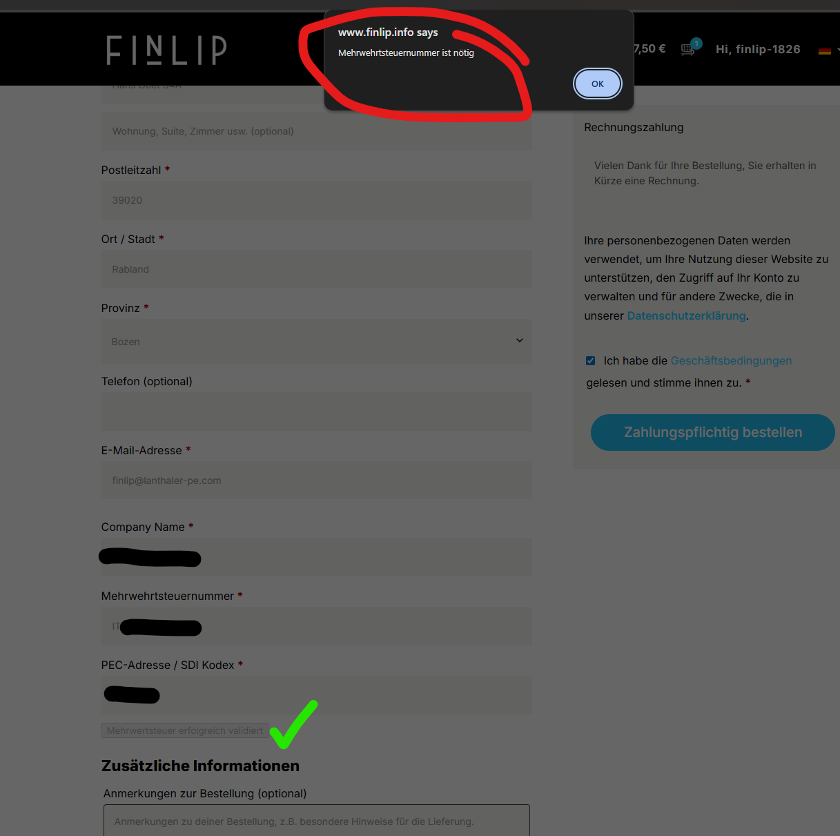 But when I skip that and enter the data directly in the Checkout process, I cannot complete the checkout. It shows me that the VAT number is required, even though I already inserted it and it was validated.