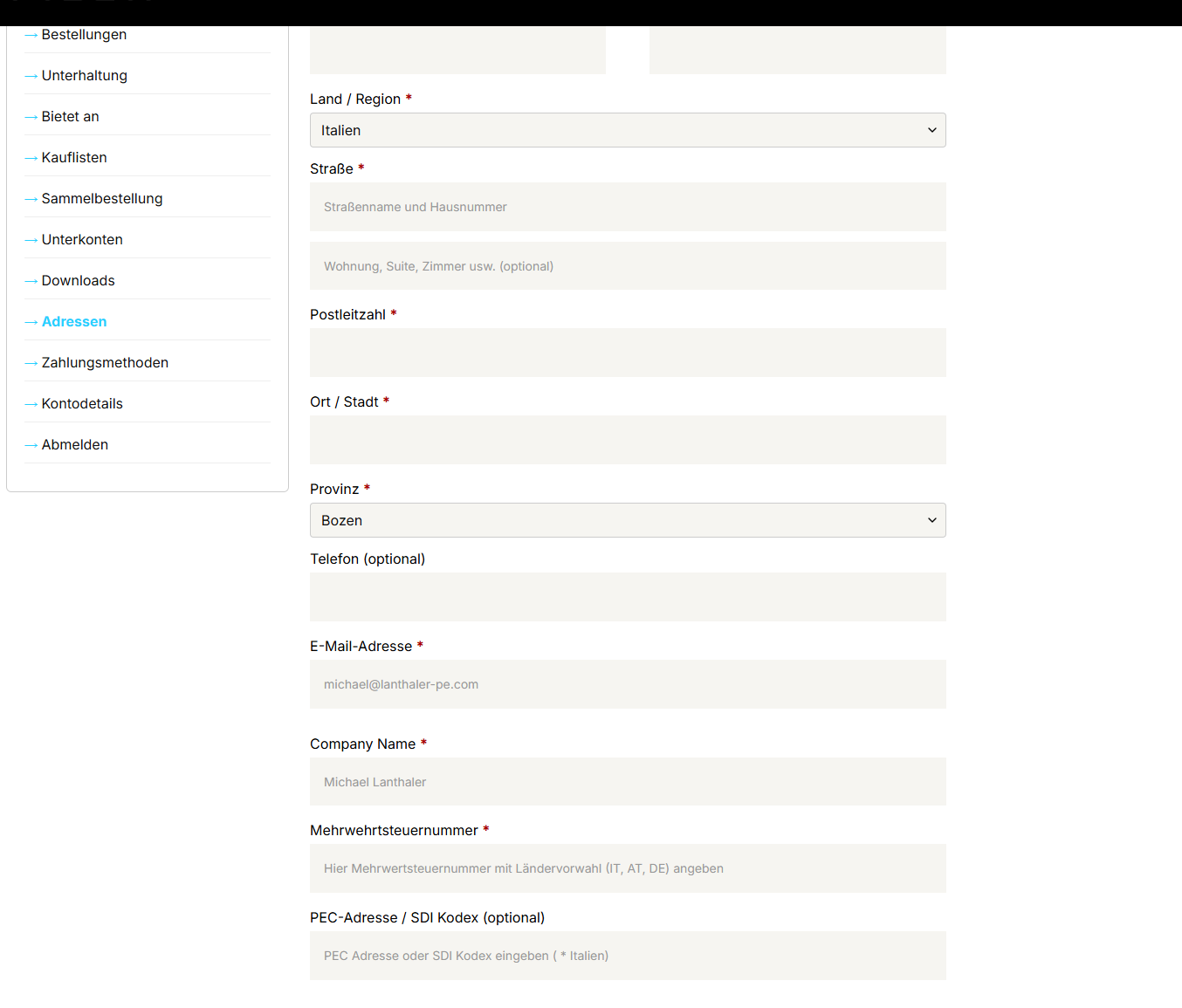 When I insert the company name, VAT number, etc. in My Account, everything works correctly and I can complete the purchase.