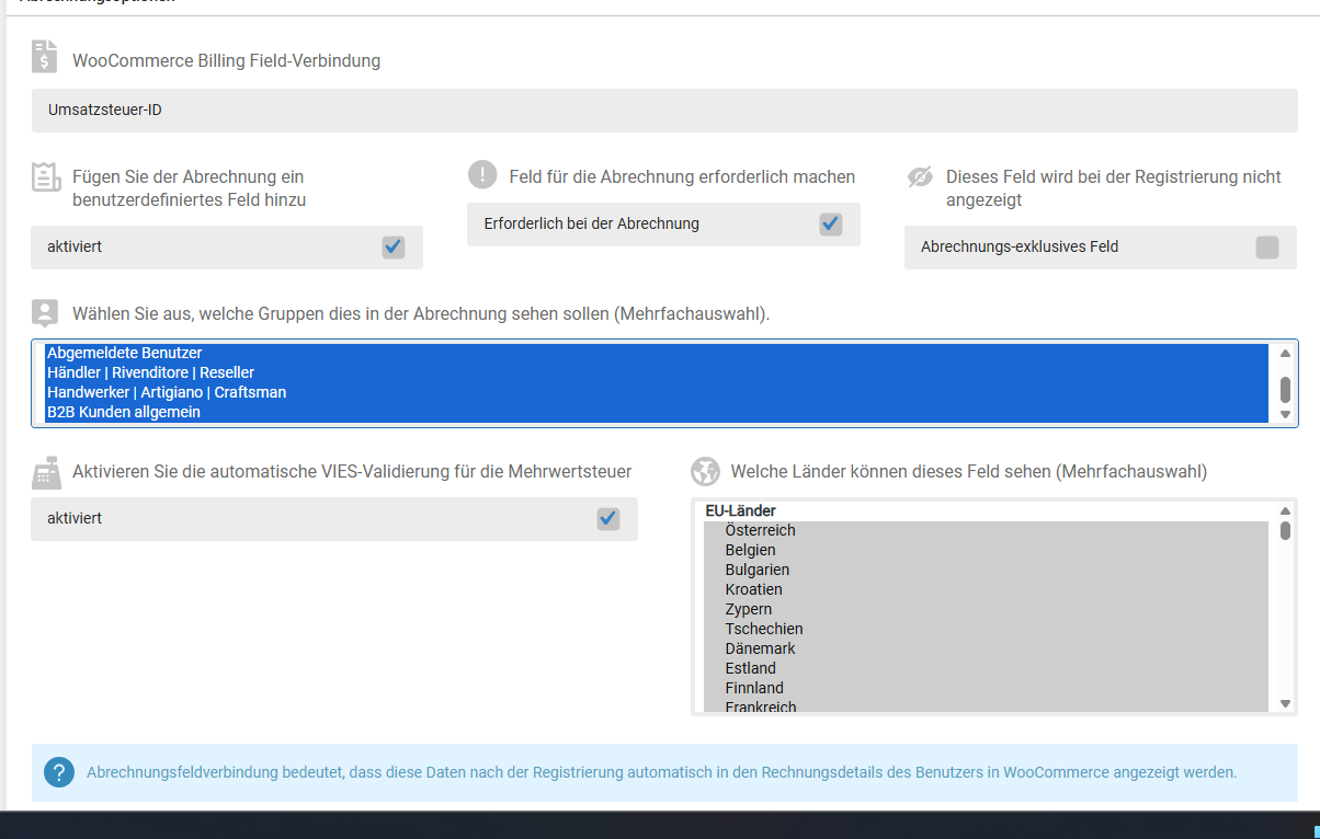 Sometimes, the VAT field doesn't appear in the "Billing" section of My Account until the checkout process is completed — even though all the settings are configured correctly.