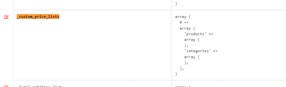 Import adds them to user fields perfectly, but the price for the customer does not change. If the changes are made manually, everything works, and the price is displayed correctly. I noticed that when editing manually, the _custom_price_lists data is filled in, but when importing, this field remains empty. I think that the price change is related to this field _custom_price_lists.