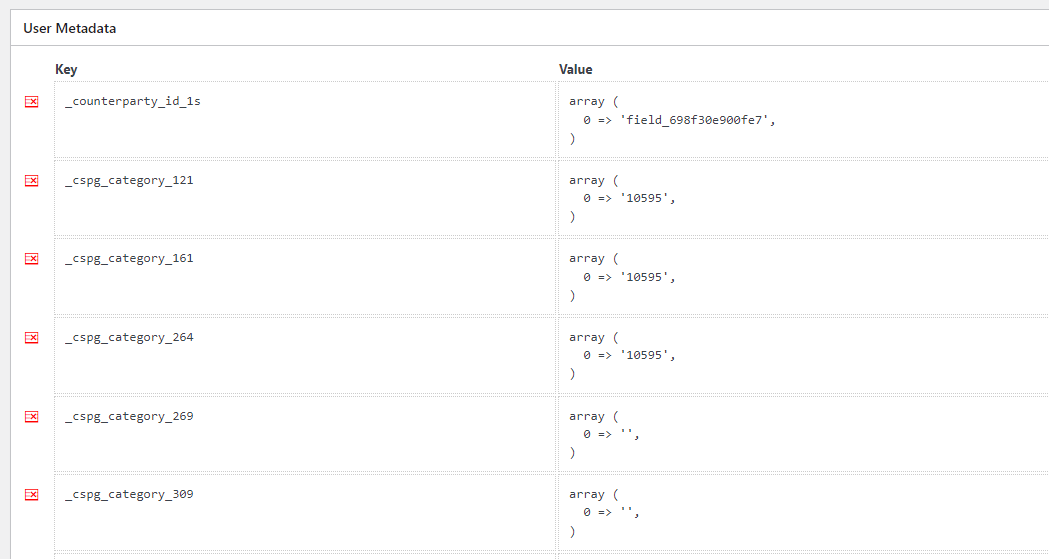 Instead of importing a complex array, you can now import individual user meta fields directly. Each product or category assignment is stored as a separate meta key: