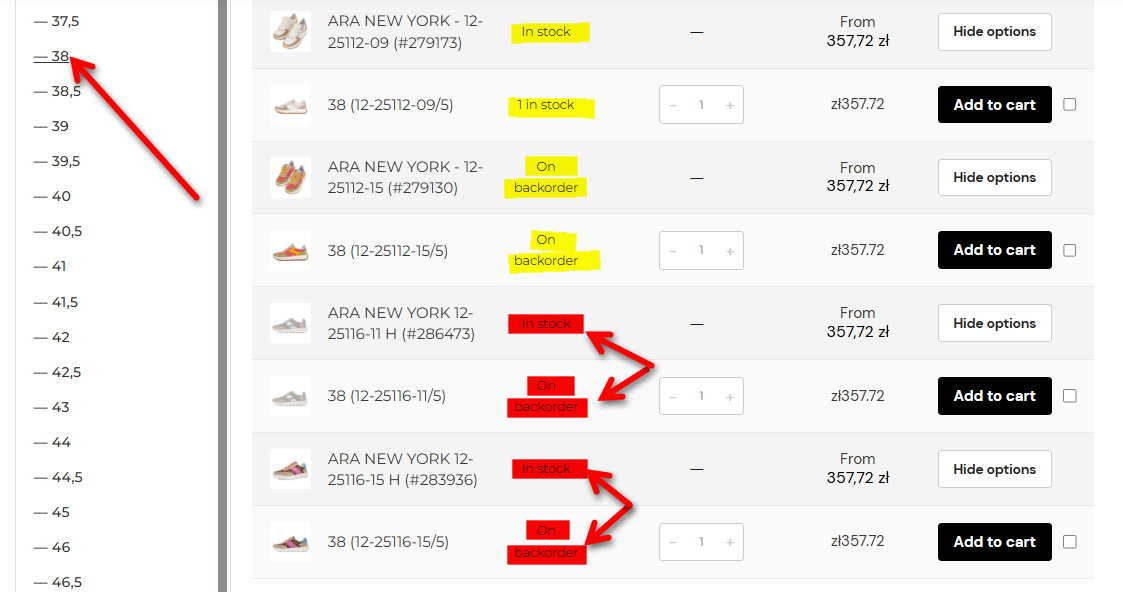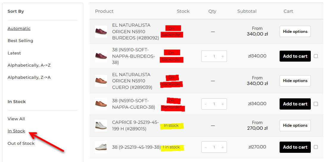 b2b.rotulamed.pl is a B2B shop only. Stock settings are available in the attachment. Customers can purchase the entire assortment. They will receive it immediately (in stock) or by backorder. It's important for customers to know what's in stock and what they'll have to wait for.