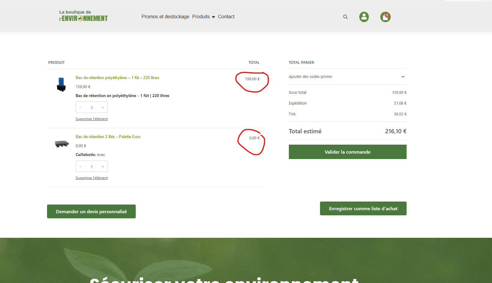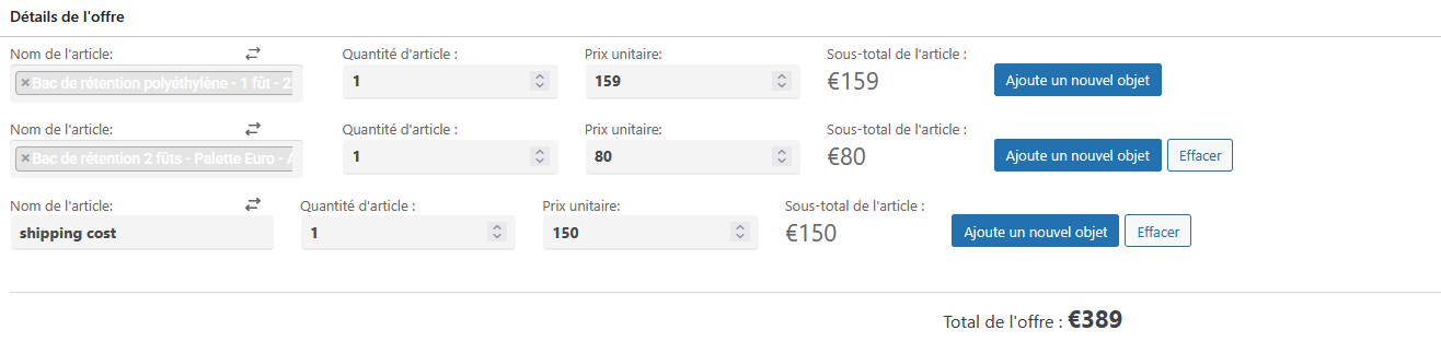 Ensuite quand je met mon offre sur le produit qui n'a pas de prix en rajoutant les frais de livraison.